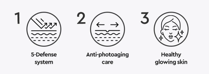 - Five-pronged defense: UVA, UVB, blue light, IR, PM2.5