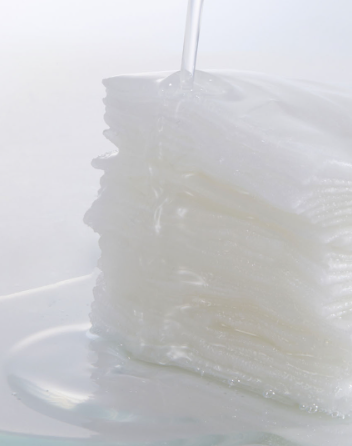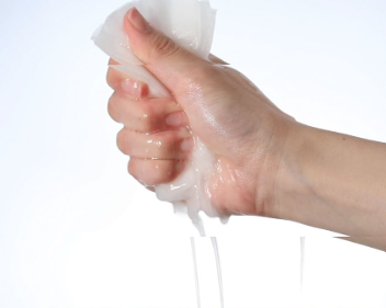 Ampoule sheet with silky, plant-derived vegan material, subtle fresh scent, gentle for sensitive skin.